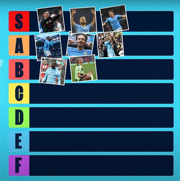 Затем Хулиан составлял рейтинг только по «Ман Сити». Кандидатами были Фоден, Агуэро, сам Альварес, Доку, Грилиш, Тевес, Балотелли и Холанд.