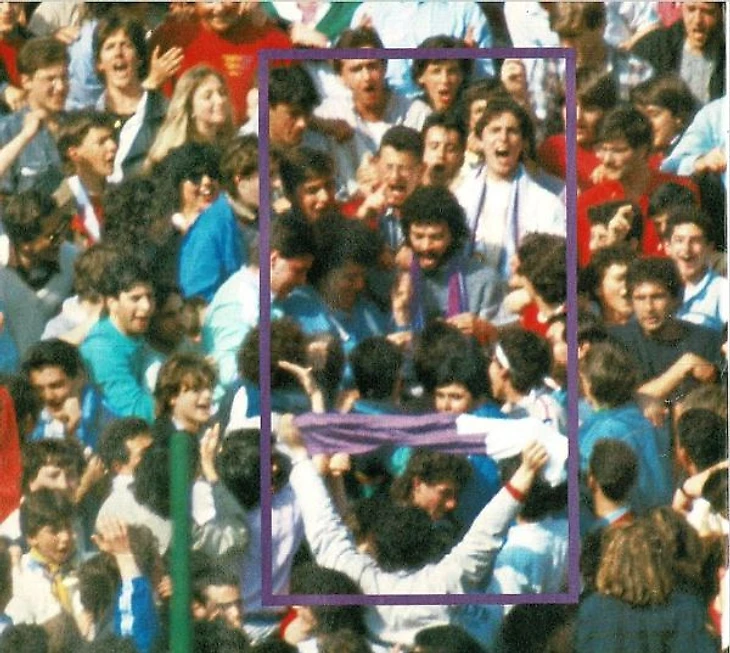5 мая 1985, во время матча Фиорентина-Удинезе (3-1): фотограф сумел запечатлеть Сократеса на Curva Fiesole в окружении фанов Фиорентины