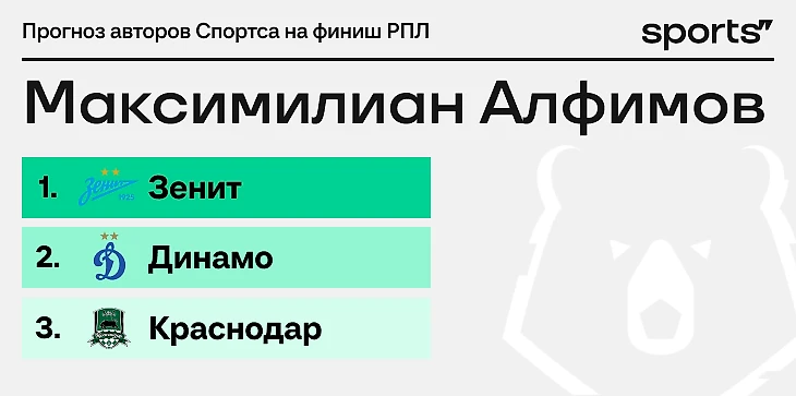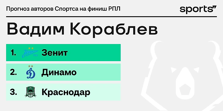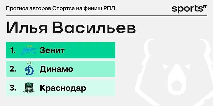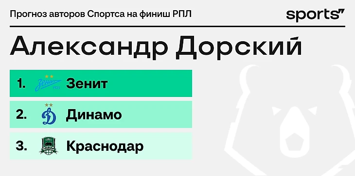 Поэтому вот мой прогноз: класс и проблемы конкурентов удержат «Зенит» на первом месте, «Динамо» заберет серебро на мощном эмоциональном рывке, «Краснодар» сползет вниз.