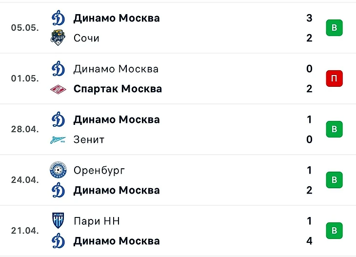 Московское Динамо, благодаря осечкам Краснодара и Зенита, включилось в чемпионскую гонку, отставая на 1 очко от первого места. Если смотреть на последние матчи москвичей, то мы увидим лишь одно поражение в последних пяти встречах (в кубке проиграли Спартаку 0:2), а в Лиге победная серия длится уже 5 матчей. Динамо не было первым в чемпионате с 1976 года, что повышает мотивацию в борьбе за золотые медали до предела. Однако по всем матчам видно, что оборона Динамо допускает большое количество результативных ошибок. В матче с Сочинцами Динамо дважды упускал лидерство, пытаясь сохранить счет. Также москвичи являются лидерами по голам, пропущенным в последние 15 минут встречи. За 27 туров в чемпионате Динамо пропустило на 1 гол больше Балтики. Тем не менее, атака во главе с Тюкавиным позволяет команде Лички набирать очки и исправлять ошибки обороны.