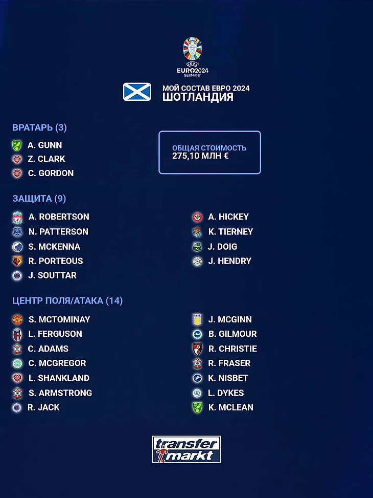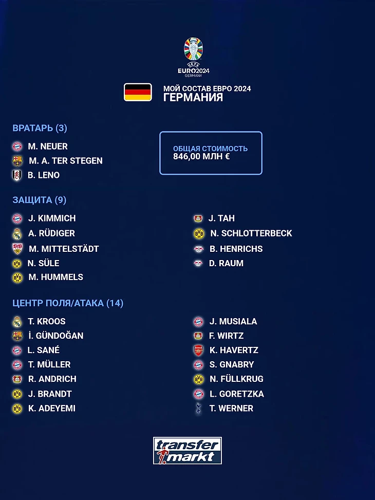 На сайте «Трансфермаркет» появилась интересная штука: составь свои заявки сборных на Евро-24
