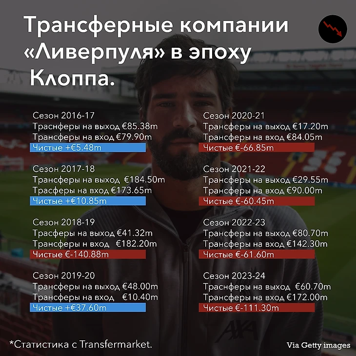 При этом нужно отметить, что при Клоппе не было ни одного трансфера больше 100 млн, второе - все трансферы имели небывалый, кроме Наби Кейта.