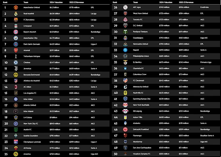 8 мая крупный спортивно-бизнесовый портал sportico.com опубликовал свою версию рейтинга самых дорогих футбольных клубов мира - World's 50 Most Valuable Soccer Clubs 2024 Ranking. Рейтинг возглавил... Манчестер Юнайтед. Что тут сказать, с одной стороны ничего нового в лидерстве МЮ нет – клуб давно и прочно в ТОПе самых дорогих и богатых клубов, с другой – его лидерство на фоне нескольких лет стагнации в результатах вызывает некоторые сомнения. cash&goals предлагает вместе разобраться в том, что и как насчитал sportico и насколько таким оценкам можно доверять вообще.