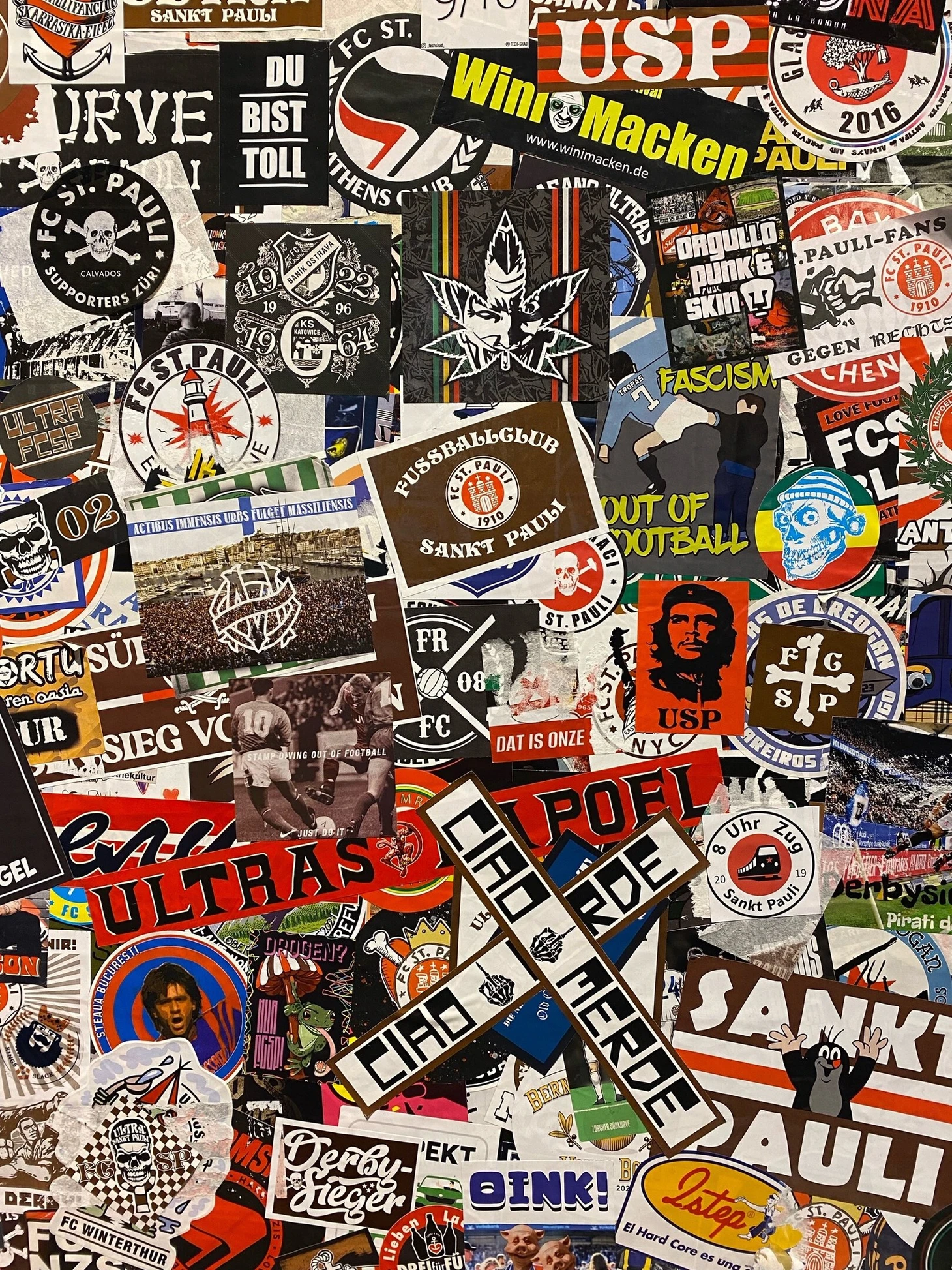 Слева вовсю заряжают «Ультрас Санкт-Паули», напротив — битком забитый желто-синий сектор «Брауншвейга», который тоже бодро шизит. Чуть правее за северной трибуной виднеется гигантский бункер, сохранившийся со Второй Мировой — монументальная постройка, которую город хочет озеленить в ближайшие годы с помощью зеленых насаждений на верхних этажах строения (а внутри сейчас там офисы и даже клуб). Я в эйфории от долгожданного матча, глаза разбегаются и хотят увидеть все, душа поет и подпевает чантам «пиратов». Только стюард периодически отвлекает напоминанием, что нужно вжаться в сектор и не загораживать проход. Как скажете. У «Паули» выдающийся сезон — клуб идет на первом месте во Второй Бундеслиге. Хочется поболеть за них, а не только за стильного австралийца Джексона Ирвина с татуировками MF Doom и Лу Рида, которого наконец-то вижу вживую, а не в ленте инсты. Периодически всматриваюсь в двуручники и флаги ультры «Паули»: отметил шикарный флаг с кружкой пива на кардиограмме, флаг с каннабисом на фоне гипнотичной спирали. Делим с Денисом первый бокал пива, смотрим за игрой и реагируем на опасные моменты у ворот «Брауншвейга» вместе с фанатами. На подтрибунке сектора справа замечаю надпись: «Никакого пива для фашистов». Вот игрок «Паули» готовится подать угловой — весь стадион достает ключи и начинает ими звенеть. Впечатляющее зрелище! Бренчание железа сливается в неповторимый звон, такого на стадионах я еще не встречал — это традиция клуба, как выяснилось позже. Под занавес тайма Афолаян забил за «Паули», трибуна взорвалась от радости, мы тоже. Перерыв! Идём за пивом, болтаем и обсуждаем планы после матча. В подтрибунке много стикеров и граффити — на одной из них изображена большая накачанная обезьяна типа Кинг-Конга, которая предлагает болеть за «Санкт Паули» и «поедать нацистов».