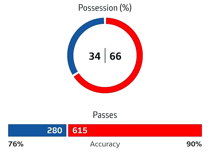По владению «Байер» тоже превзошёл «Бохум» (66% на 34%). «Байер» - одна из самых долго владеющих мячом команд Бундеслиги (58,2%). Самый низкий процент владения был в 21-ом туре против «Баварии» (38%) а, самый высокий - в 24-ом туре против «Кёльна» (73%). Количество передач (615 против 280) и их аккуратность (90% против 76%) тоже в пользу команды Хаби Алонсо.
