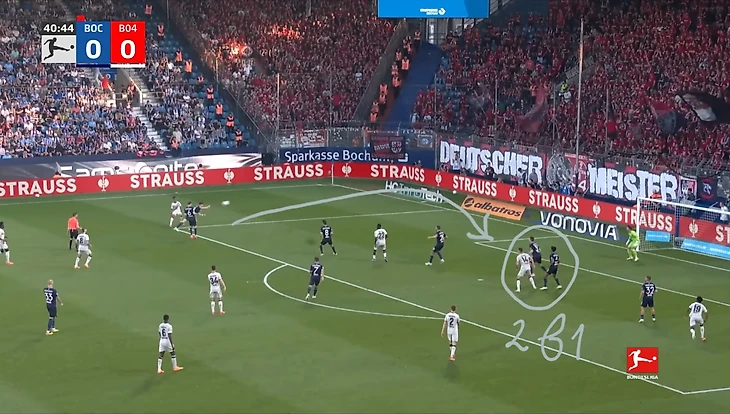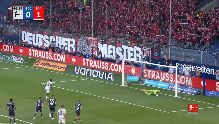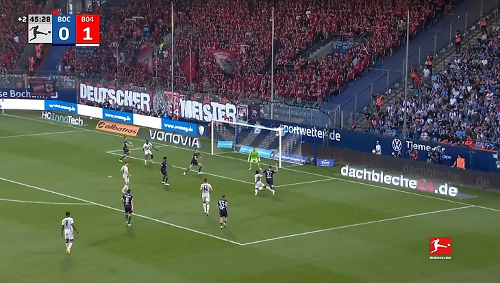 Патрик Шик и Виктор Бонифас затем сразу взяли курс на победу, реализовав два момента. Артур навесил в штрафную площадь «Бохума» с правого края, Шик, оставаясь один против двух соперников, сумел отправить мяч в сетку ворот Риманна. Примечательно, что это был первый удар в створ ворот в матче.