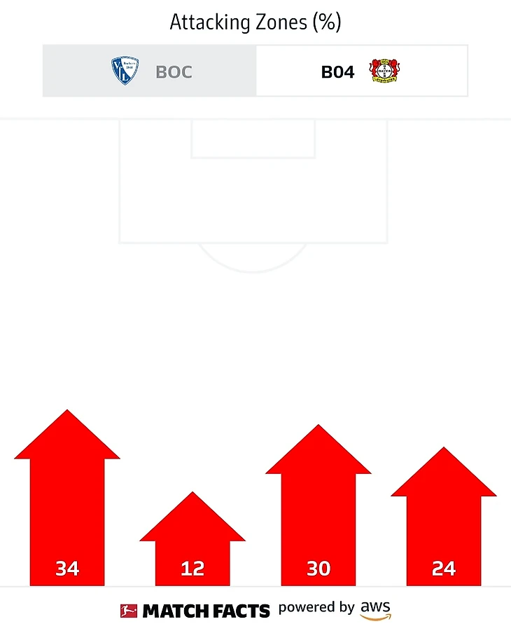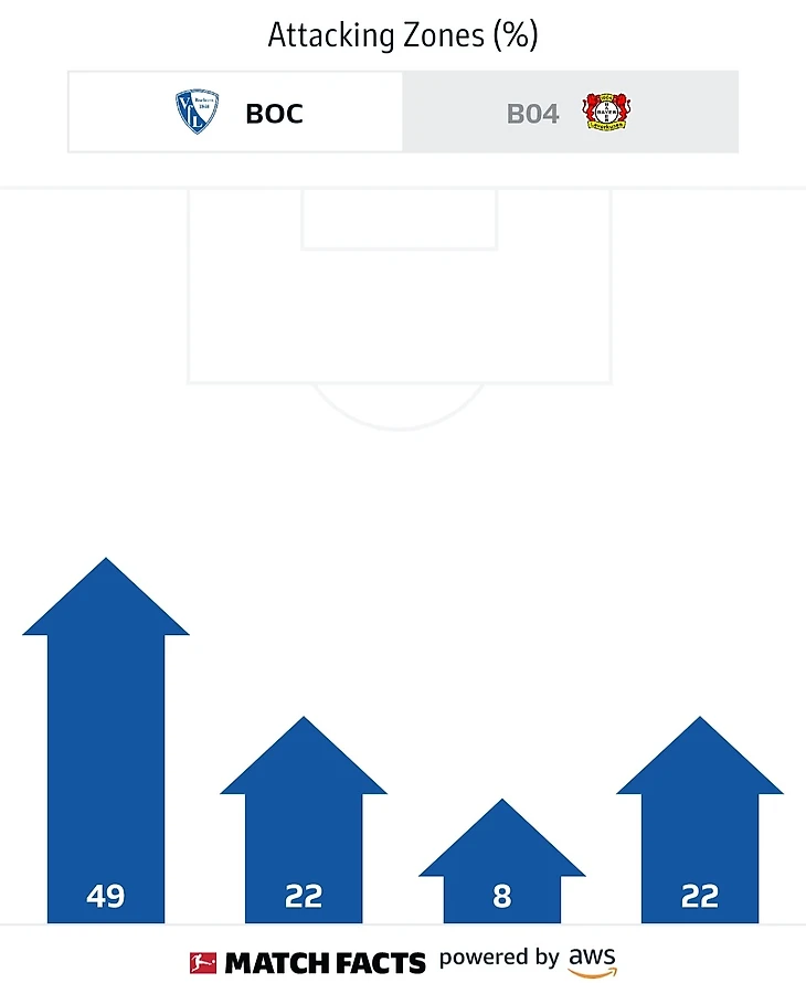 Примечательно, но этот матч стал единственным в этом сезоне Бундеслиги, в котором «Бохум» ни разу не ударил в створ ворот соперника. Даже при разгроме от «Баварии» со счётом 7:0 в 5-ом туре команда Бутшера сумела один раз попасть в створ. Статистика xG отражает то, что происходило на поле: 4,28 у «Байера» и всего лишь 0,11 у «Бохума». Также у «Бохума» это самый малый показатель ожидаемых голов в этом сезоне чемпионата (0,14 было в 5-ом туре против той же «Баварии»).