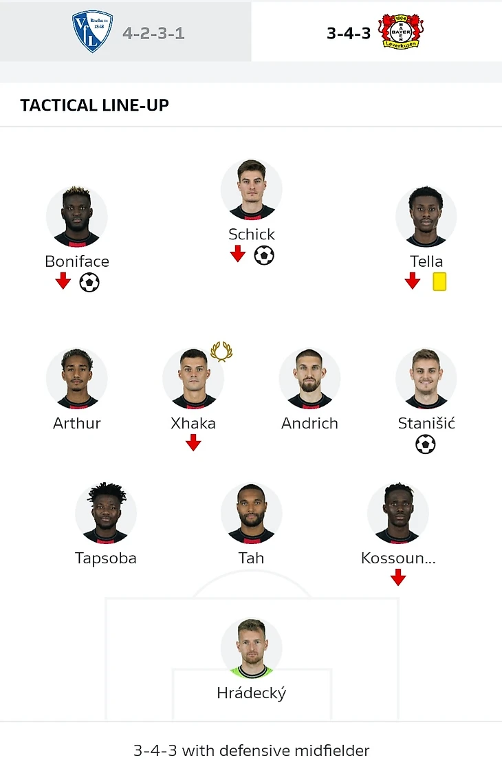 Хаби Алонсо немного поменял состав по ходу игры, сделав замены, привлекая среди прочего Йонаса Хофманна, Амина Адли и Борху Иглесиаса.