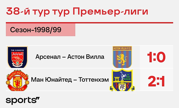 К тому времени «МЮ» побеждал в четырех из первых пяти сезонов АПЛ, но затем уступил титул «Арсеналу». Лондонцы были близки к защите: за два тура до конца опережали «МЮ» на два очка. Но в предпоследнем – проиграли «Лидсу». И тогда «МЮ» выскочил вперед.
