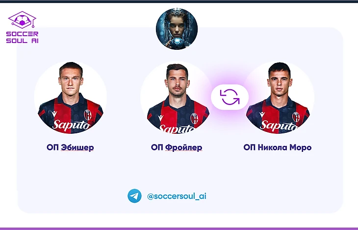 На атакующих флангах практически сразу начались перестановки. Сломался Орсолини и на правый фланг вернулся Ндойе. Слева больше времени стал получать Салемакерс, который в итоге на нём и закрепился. Его дублером в свою очередь стал Урбаньски, эпизодически мелькнувший на старте сезона. В итоге у Мотты получился неплохой набор и на этих позициях (Урбаньски исправно набирал IQ, с высокой долей ударного – 71%). Проблемой оставалось последовательное выбывание Орсолини и Ндойе по причине травм. Абстрагируясь от травм, по итогам круга оптимальным игроком для использования на правом фланге является Орсолини, на левом – Салемакерс;