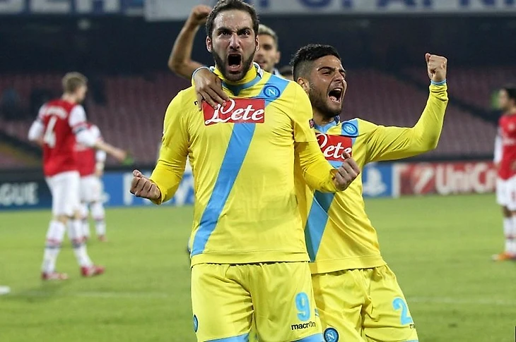 Начало матча в Марселе порадовало болельщиков всех соперников дортмундцев по группе - 1:1 уже на 14-й минуте после голов Левандовски и Диавары, в то время как в Неаполе «Арсенал» максимально засушил игру и до 73-й минуты неаполитанцам не удавалось размочить счет. А я напомню, что «Наполи» если не выигрывал с разницей в 3 мяча, то полностью зависел от результата «Боруссии» в параллельном матче на «Велодроме». Тем громче и активнее праздновал «Сан-Паоло» гол Гонсало Игуаина с передачи Кальехона, которых летом привез Рафа Бенитес из мадридского «Реала» в компании Рауля Альбиоля. Игуаин, рьяно отмечая свой успех, как мог пытался вселить в болельщиков веру в плей-офф первого турнира Европы, а не второго.