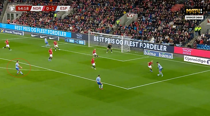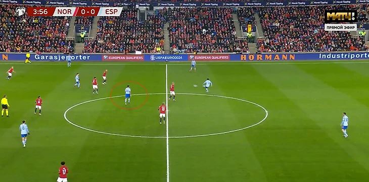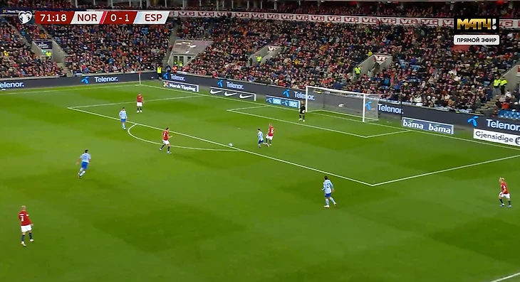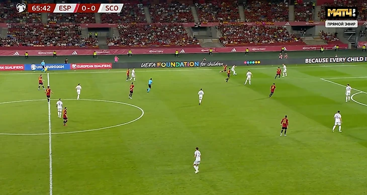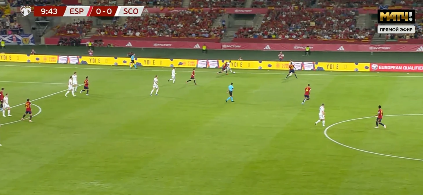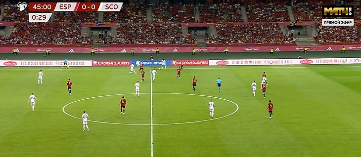 И обратите внимание, как эпизодами яро прессингуют испанцы. Обычно такое происходит, если соперник решает разыграть мяч от ворот.