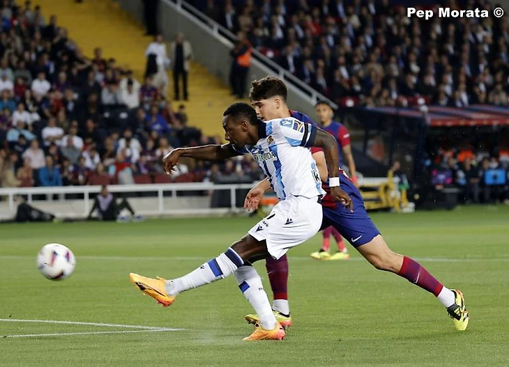 Полагаю, что именно на этот не самый прочный сплав молодости и опыта попросил обратить внимание Иманоль Альгуасиль, главный тренер команды из Сан-Себастьяна, когда давал последние наставления перед матчем своим игрокам. В итоге за первые полчаса игры гости трижды пощекотали нервы болельщиков на «Монжуике», и всякий раз опасность исходила от Шералдо Беккера. Крепкий голландец суринамского происхождения был и быстрее Иньиго, и мощнее Пау – точнее, он лучше понимал, как эффективнее использовать свои габариты: поставить спину, оттеснить плечом, укрыть корпусом.