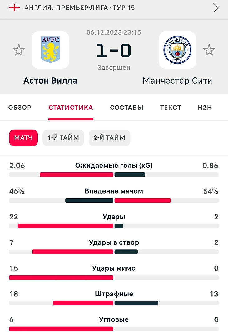 Гвардиола изначально приехал на «Вилла Парк» держать осаду и у него это по сути получалось до 75-й минуты, пока Леон Бэйли не без помощи рикошета не распечатал ворота Эдерсона. Да уж, нечасто можно видеть бразильского голкипера таким загруженным работой, а еще более непривычно лицезреть 0 ударов по воротам от «горожан» за весь 2-й тайм.