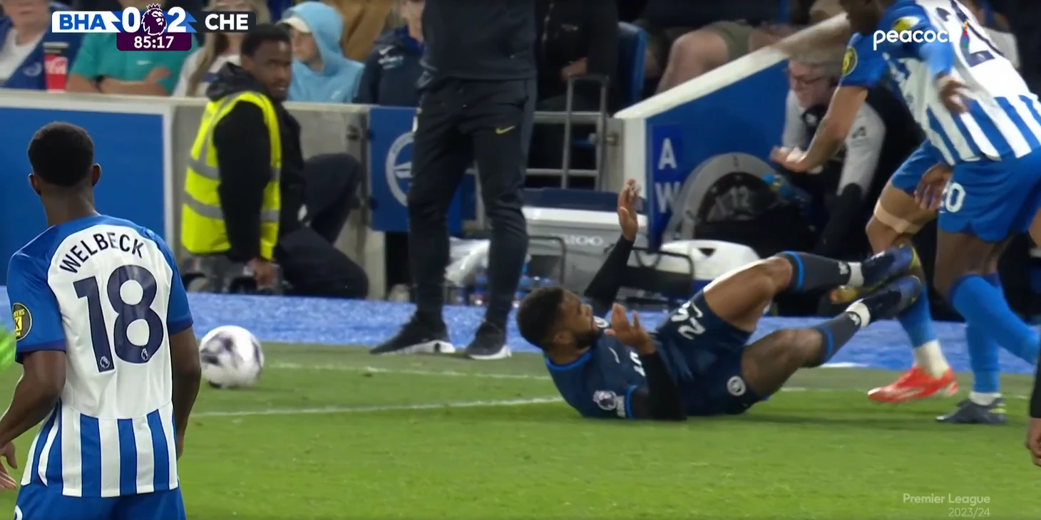 «Брайтон» снова ловит Кукурелью в обороне. На сей раз прилетело испанцу за довольно узкую позицию – фулбек оставил не обратил внимание на Лэмпти, который оставался один у бровки.