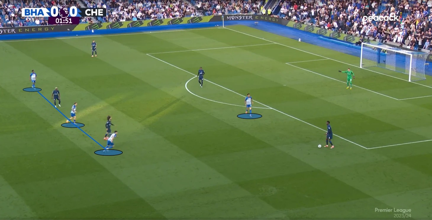 «Брайтон» защищался по схеме «4-2-3-1». Такая формация понятна – тройка полузащитников активно прессинговала Кукурелью и Кайседо, имея численное преимущество в моменте.