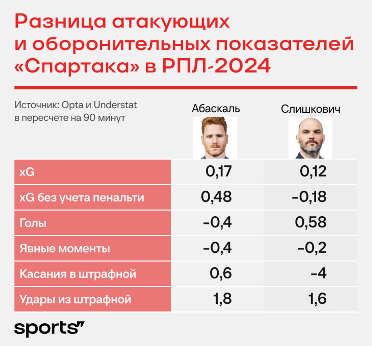 В общем, Слишкович молодец, только важно уточнить: одна из основ его результата – везение. «Спартак» почти не прибавил впереди (например, даже при Абаскале создавали больше xG), а в обороне вообще наметился регресс: «Спартак» больше позволяет сопернику в своей штрафной (при Абаскале – в среднем 19,8 действий, при Слишковиче – 28).