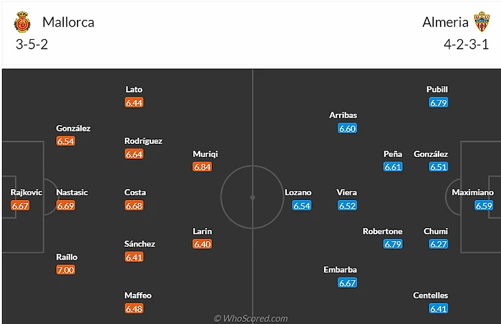 Но для полного хеппи-энда Мальорке нужно сохранить прописку в Примере, так что матч с Альмерии становится для хозяев ключевым. По этому случаю лазарет островитян совсем опустел, даже только восстановившиеся Маффео(5,5) и Настасич(5,5) имеют шансы помочь команде не вылететь из элитного дивизиона.