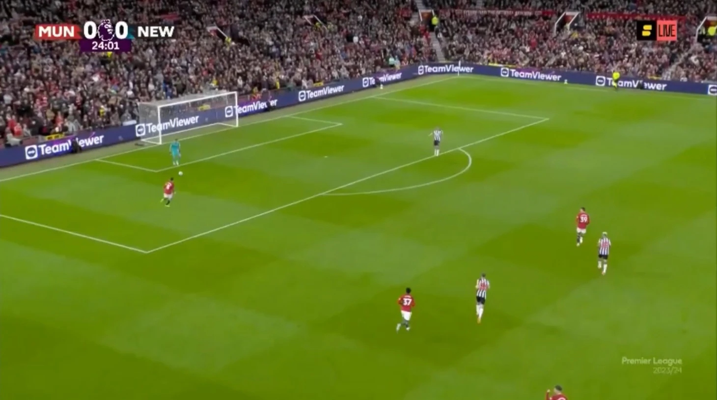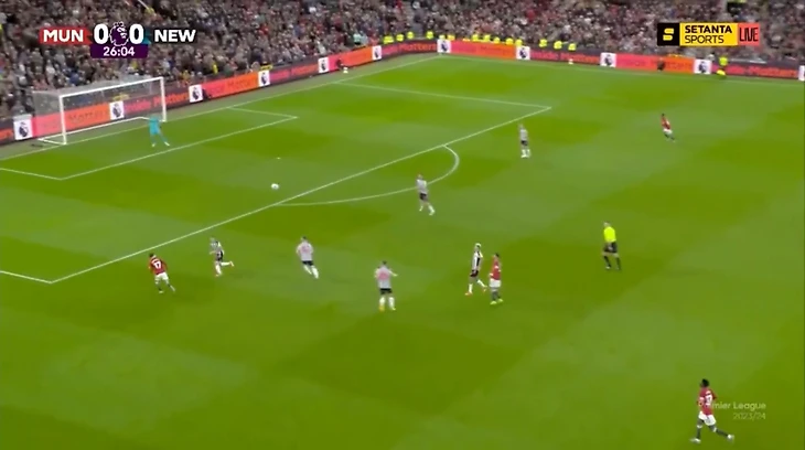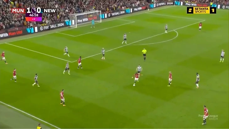 Ну и в целом про построение атак Манчестера сложно говорить, потому что смотрите какая комбинация у Каземиро раз-два и бух туда за спину защитникам, причем это неслучайно, как будто даже наиграно.