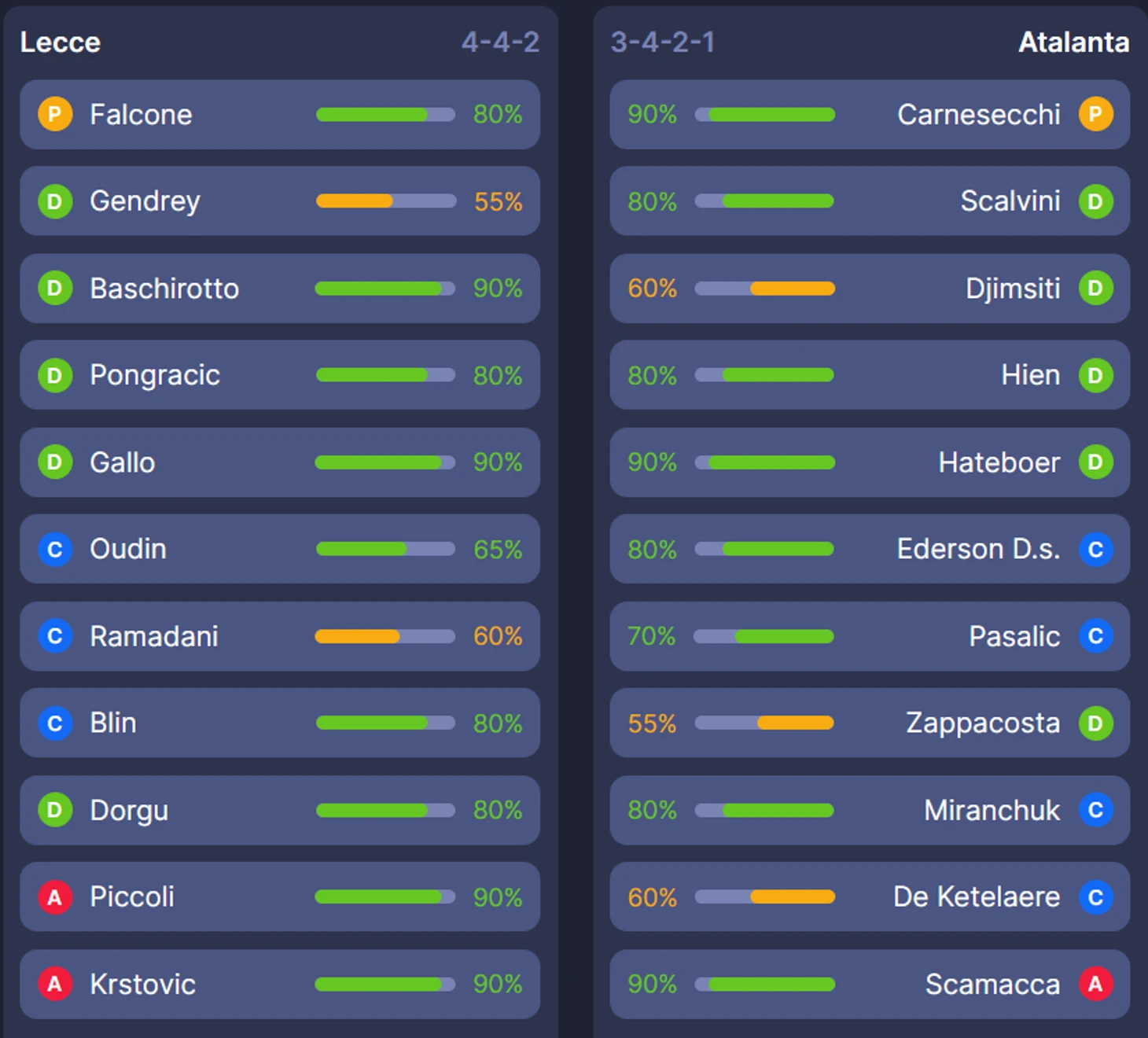 Лучшие варианты: Скамакка (нап, 8) выйдет в стартовом составе на острие. Если вы являетесь фанатом Миранчука (пз, 7), то это отличная возможность взять Алексея.