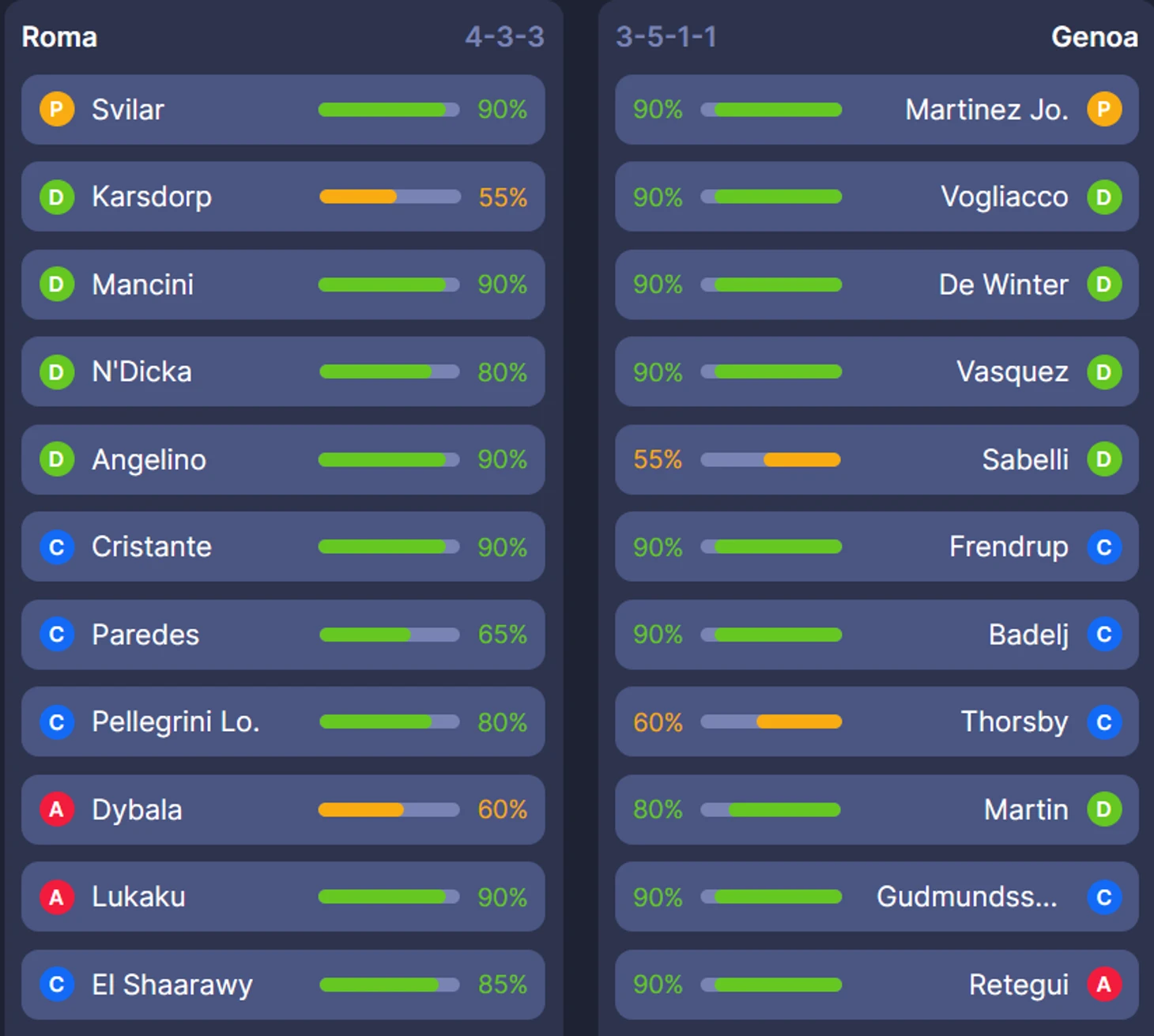 Топ-игроки и джокеры: Рома (vs Дженоа)