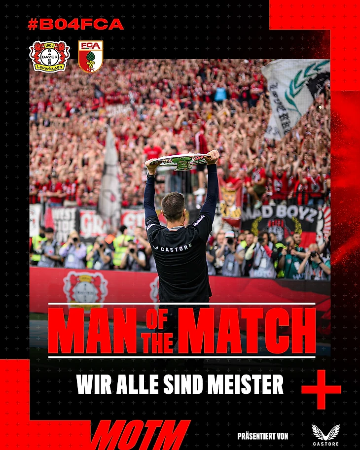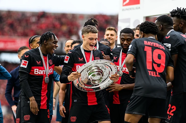 Исторический день на «Бай-Арене». «Байер» победил «Аугсбург» со счетом 2:1 в последнем 34-ом туре Бундеслиги. «Байер 04» не только завоевал в этом сезоне чемпионский титул, но и стал первой командой в истории, которая оставалась непобеждённой на протяжении всего сезона лиги.