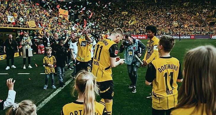 Сразу после финального свистка по зову своих фанатов Ройс залез на Южную трибуну, чтобы еще раз поприветствовать их. За ним туда полезли и Матеу Морей, и Мариус Вольф. «Und wir werden immer Borussen sein es gibt nie, nie, nie einen anderen Verein» («И мы всегда будем Боруссией, и никогда, никогда, никогда не будет другого клуба»), - пошло по стадиону. А затем был длинный круг почета. Сам Ройс не остался в долгу: «Спасибо за все! Прощальное пиво за мной. Ваш Марко». Как оказалось, эта акция запланирована заранее и была согласована с руководством клуба…