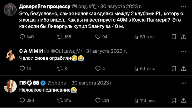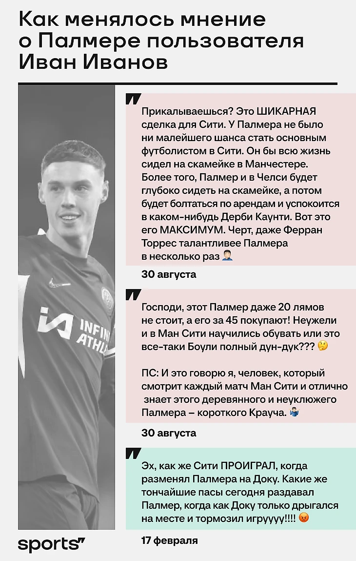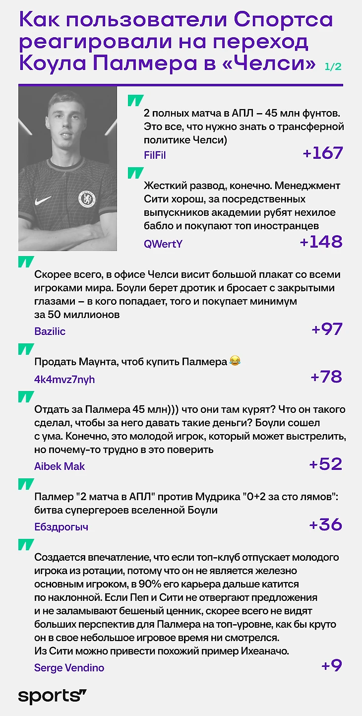 «Чем он лучше Мадуэке? Дикий оверпрайс за лавочника «Сити». Что писали в комментах, когда Палмер переходил в «Челси»