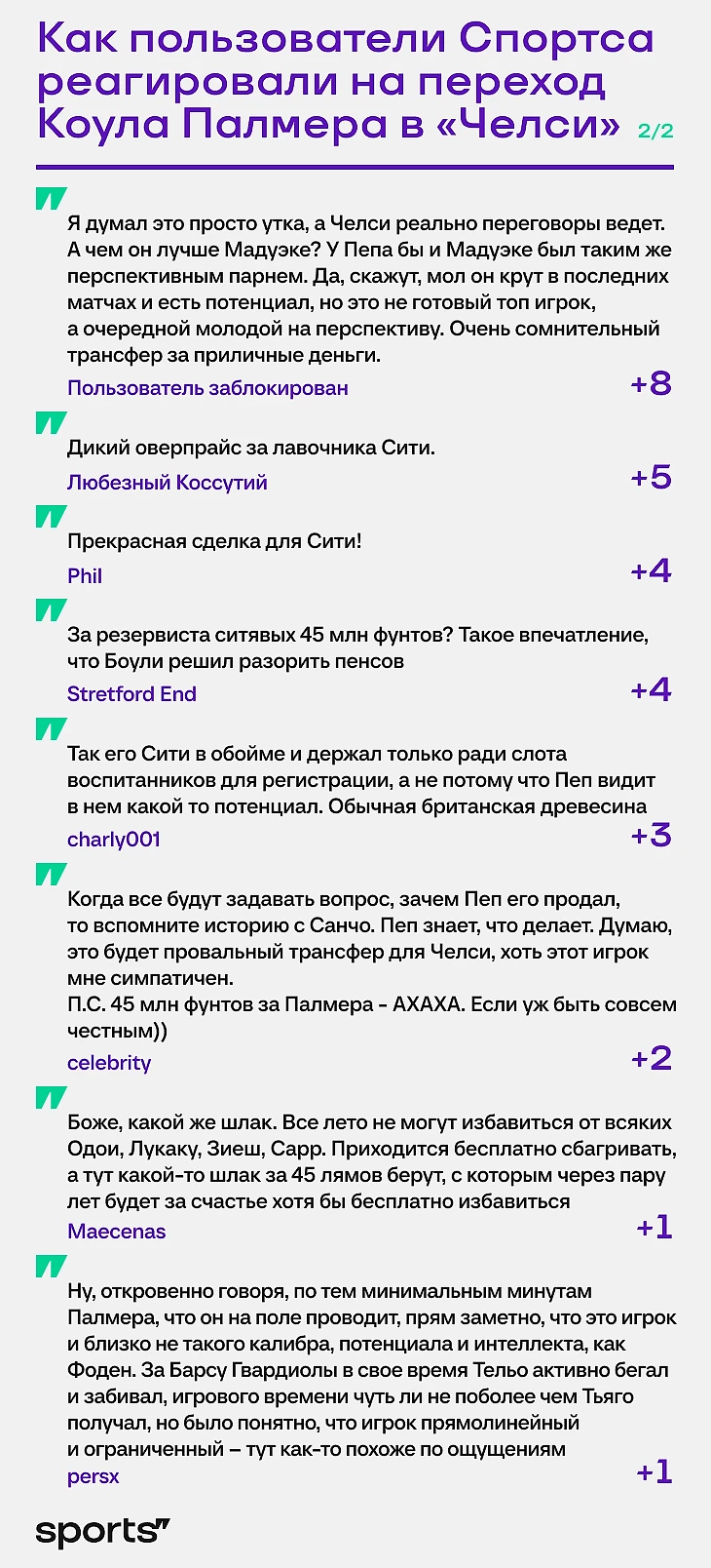 В заплюсованных было много хейта. Главный посыл: «Челси» при новых владельцах очень часто ошибается в трансферах, а Пеп Гвардиола бы не отпустил по-настоящему важного игрока.