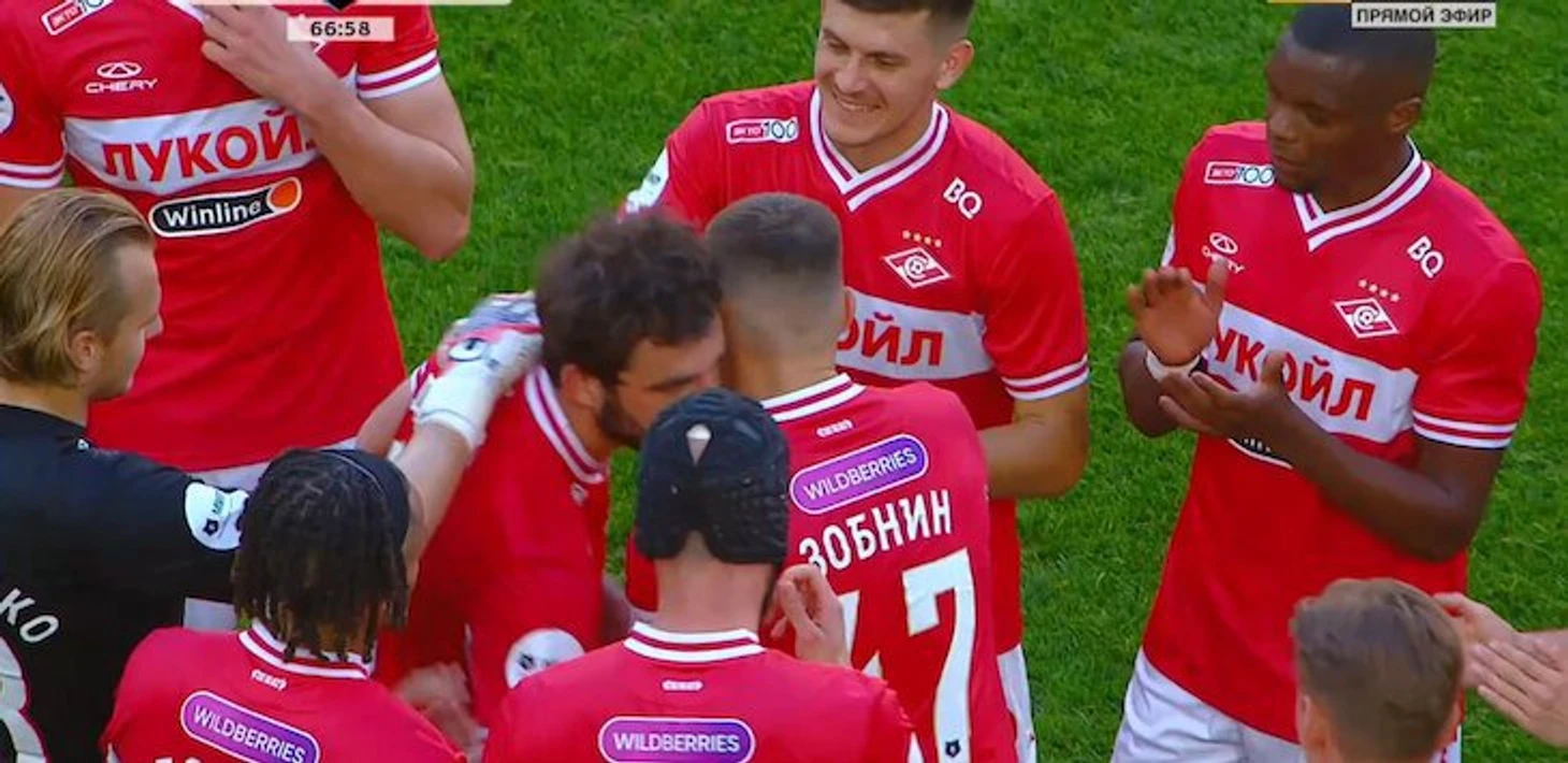 «Спартак» красиво проводил Джикию: трешка «Рубину», коридор прямо на поле, качали на руках 👏