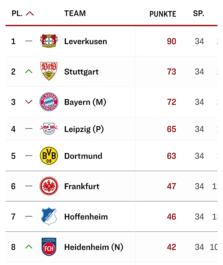 В субботу завершился очередной сезон Бундеслиги. Позиции команд уже не поменяются. В Лиге чемпионов выступят «Байер», «Штутгарт», «Бавария», «РБ Лейпциг» и дортмундская «Боруссия». «Айнтрахт» снова квалифицировался в Лигу Европы. А «Хоффенхайм» добился права сыграть в Лиге конференций. Однако двум немецким клубам ещё предстоят финалы в двух из трёх турнирах, а «Байер» оспорит с «Кайзеслаутерном» Кубок Германии. По итогам этих матчей ситуация с представителями Бундеслиги в еврокубках ещё может измениться.