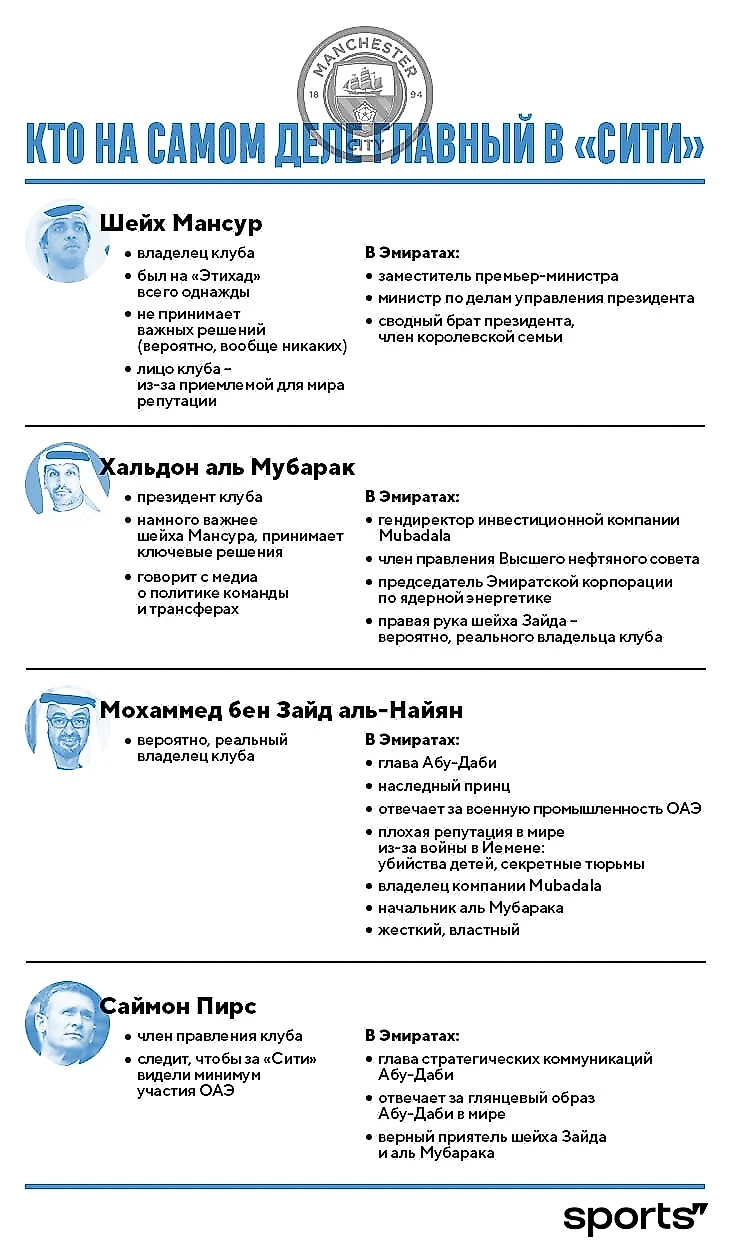 Еще один важный управленец для клуба – австралиец Саймон Пирс, директор и глава стратегических коммуникаций Абу-Даби, верный приятель шейха Зайда и аль Мубарака. Пирс отвечает за глянцевый образ Абу-Даби в мире.