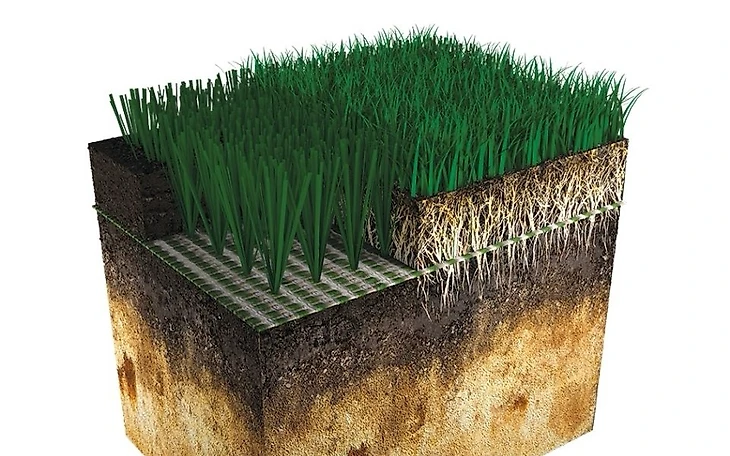 Этот метод укрепления корневой зоны почвы включает в себя смешивание различных синтетических волокон с последующим выращиванием натурального газона.