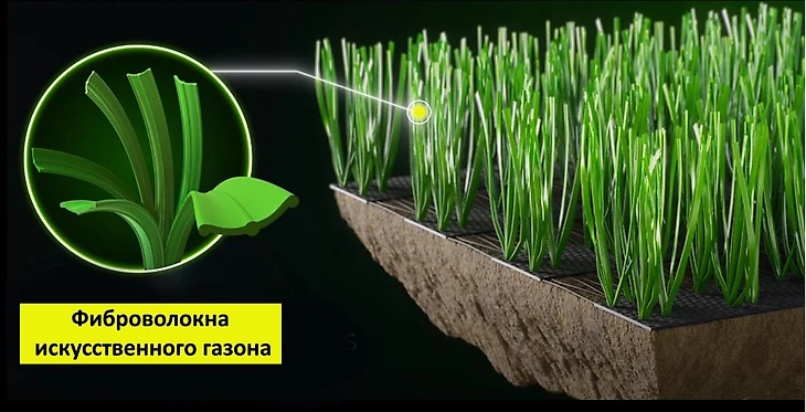 Ведущими игроками данной технологии являются синтетические волокна, которые выполняют на поле три основные функции: