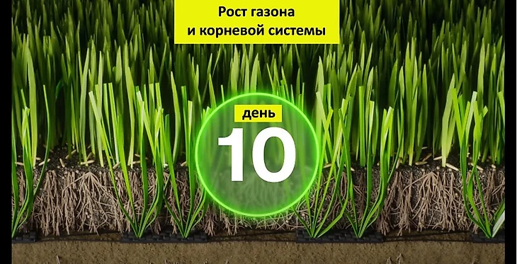 После посева травы первые ростки будут заметны уже через 7-10 дней: