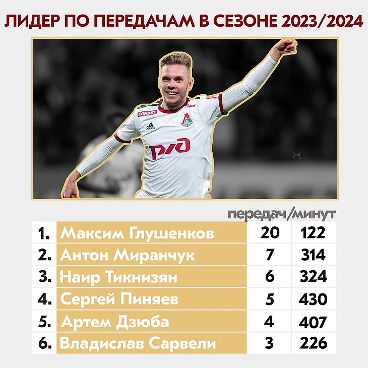 Неоднозначный сезон проводит Антон Миранчук, который вроде как сыграл последний домашний матч за «Локомотив» в прошлую субботу, а вроде по информации СЭ продлевает контракт, все-таки попал в оба списка, набрав 7+7 в 38 играх сезона. На каждое голевое действие приходится 157 минут игрового времени.