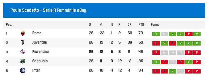 • «Рома» разгромила «Фиорентину». «Волчицы» доминировали, а забивали Моэка Минами, Санне Трёльсгор, Валентина Джачинти (дважды) и Эвелин Вьен, ставшая лучшим бомбардиром сезона. После матча римляне получили трофей за чемпионство.