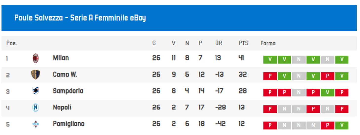 • В группе вылета оба матча завершились со счётом 3:1. «Помильяно» одержал волевую победу над «Наполи», но этого не хватило для сохранения прописки. Сами же неаполитанки отправились в стыки к «Тернане».