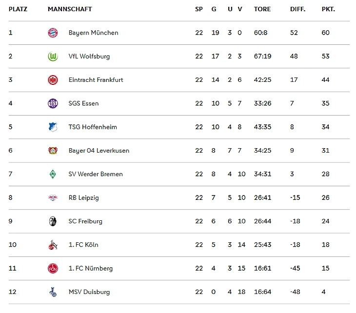 • «Бавария» стала чемпионом ещё двумя турами ранее и шла без поражений. В последнем матче в соперниках был крепкий «Хоффенхайм», потерявший шансы на выход в ЛЧ. Мюнхенки провели хорошую игру. Каролин Зимон открыла счёт прямым ударом со штрафного. Это очень важный гол для неё: она пропустила год из-за разрыва «крестов» (включая ЧМ), который получила в товарищеской игре с Замбией, проводила лишь вторую встречу в старте и отличилась впервые с 28 мая прошлого года.