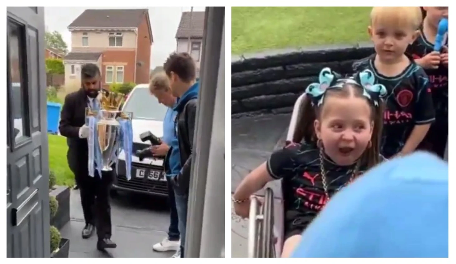 После вручения команде Кубка АПЛ трофей отправился в дом к одной из семей Манчестера - дети, в том числе девочка с ограниченным возможностями, были в полнейшем восторге.
