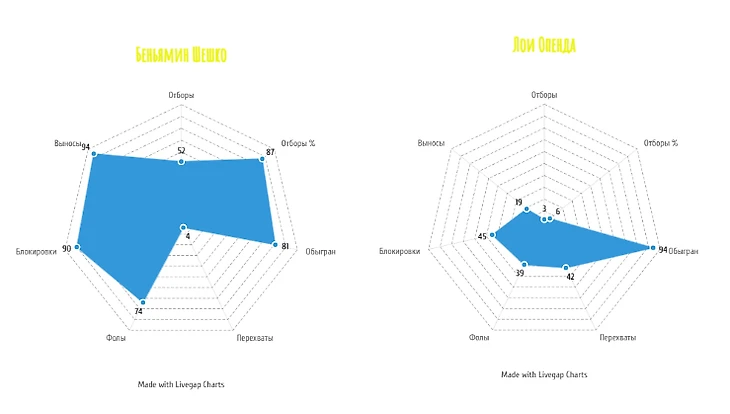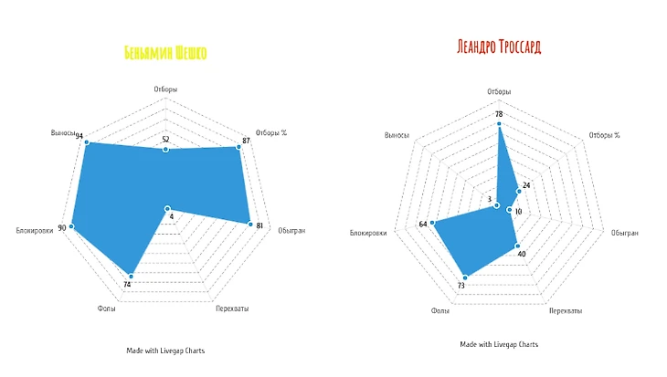 Вступал в отбор в среднем 1 раз за матч, показатель успешности 67%. Третий результат в Лиге.