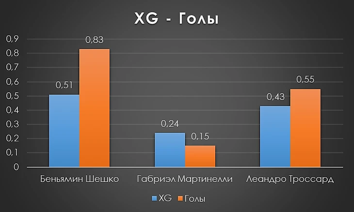 Игрок делал 10 передач за игру, что в 2 раза меньше любого игрока «Арсенала» на позиции левого нападающего.
