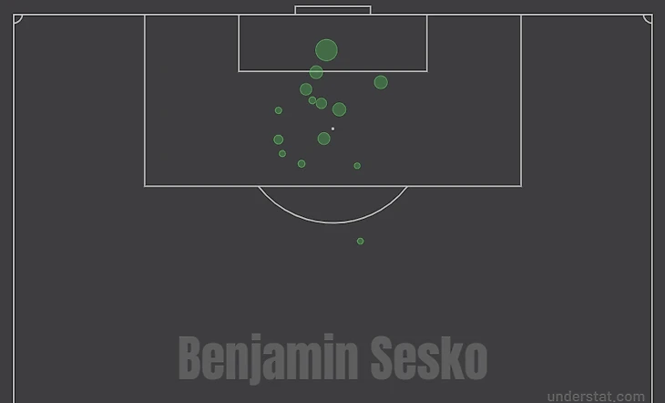 Игрок нанес 47 ударов, при этом показатели XG за удар 0,17. Входит в Топ 10 игроков Бундеслиги.
