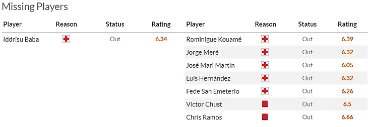 Что касается гостей, то они отходят от жесткой сечи с ОПГ Хетафе, которая состоялась в прошлом туре и очень надеются, что Кике Гарсия(6,5) восстановится и полетит с командой на Канары.