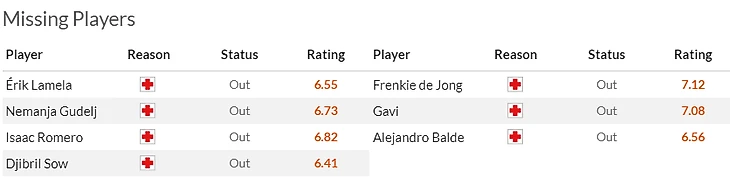 К слову, в Севилье с аналогичной проблему разобрались загодя: Кике Санчес-Флорес точно покидает команду после воскресного матча, но пока что именно ему предстоит определиться как строить игру андалусийцев без Оливера Торреса(7), а также ждать отмашки врачей по поводу здоровья Хесуса Наваса(6), Сусо(7) и Акуньи(6,5).