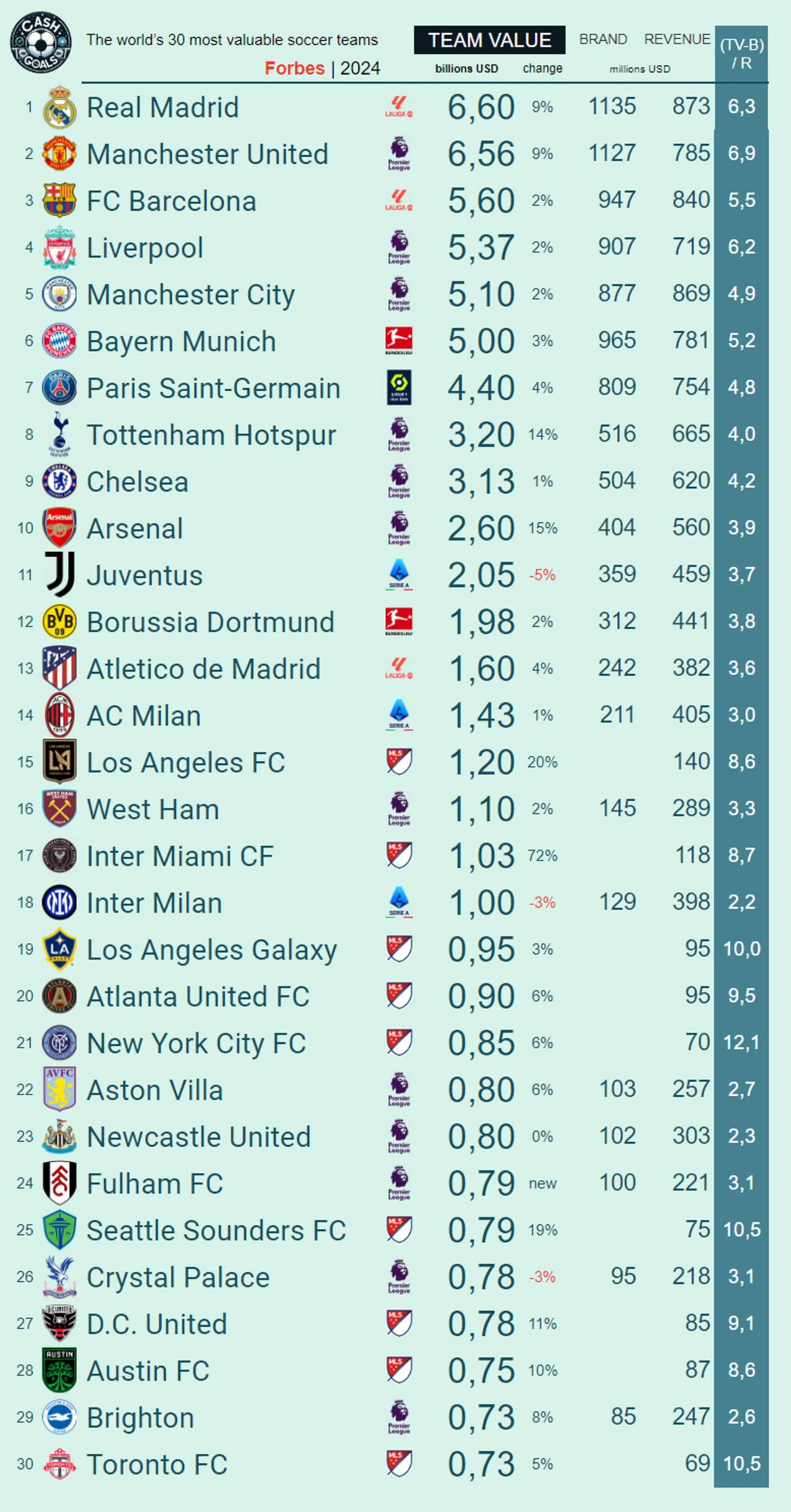 После рейтинга sportico.com (опубликован 8 мая) уже писал о том, что из себя представляют эти оценки. Смотрите статью – «Стоит ли верить рейтингам стоимости футбольных клубов? Разбираемся вместе». Там разбор рейтингов от Forbes, sportico и Football Benchmark.