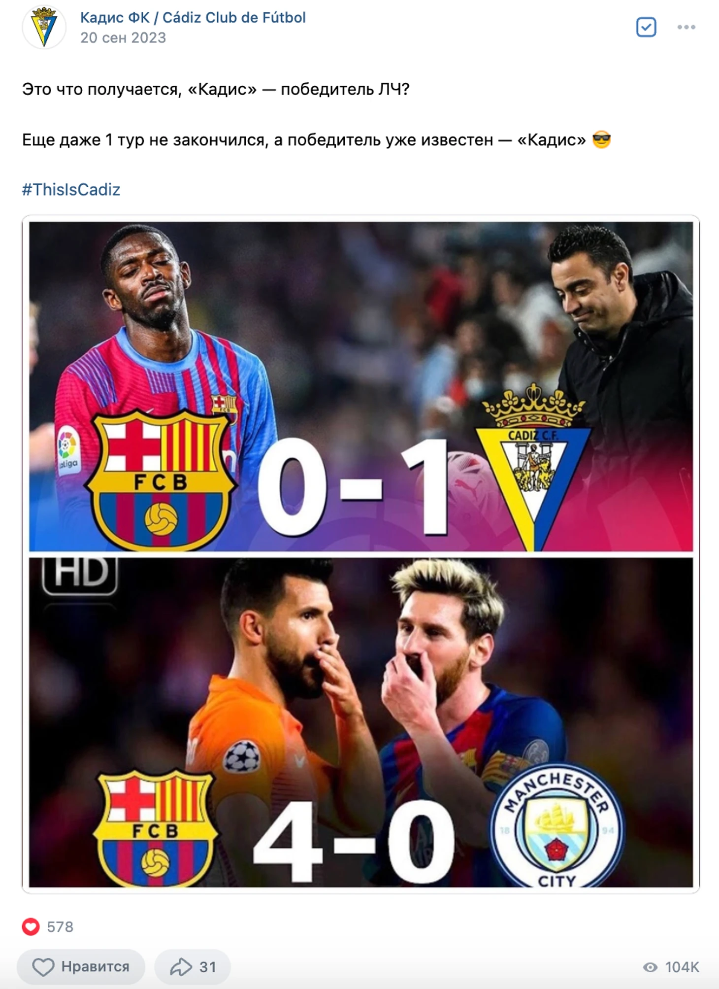 Официальная страница «Кадиса» «ВКонтакте»