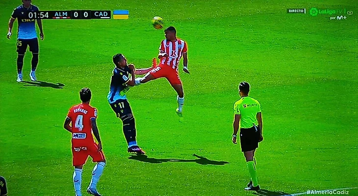 Судья посчитал, что в этом моменте не было фола. После этого, кстати, аргентинец Гонсало Эскаланте выбыл на полтора месяца. Еще смешнее эпизод делает то, что арбитр смотрит на все это буквально в двух метрах от игроков.