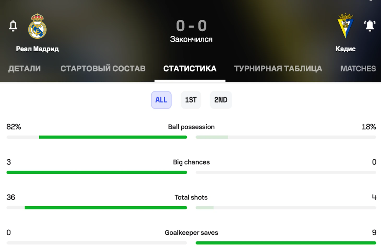 «Кадису» хватило 18% контроля мячом (!), чтобы не только обыграть «Барселону» (!) но и быть лучше каталонцев по ожидаемым голам (!) xG (2.16 – 1.79). В одном сезоне «Кадис» забрал 4 очка с каталонцами, когда те владели мячом в среднем 78% времени. При этом, ударив в створ 3 раза, «Кадис» забил 3 гола. В матчах с мадридским «Реалом» еще веселее: однажды «Кадис» Серверы сыграл вничью со «сливочными» в гостях, владея мячом 18% времени и ударив 4 раза за игру, при этом допустив 36 ударов в свою сторону: