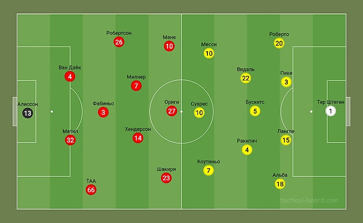 Было неважно, кто именно выйдет против каталонцев. Важно другое - как именно мы будем играть с ними. Матч пропускали Салах и Фирмино, вместо них вышли наша легенда Дивок Ориги и Джердан Шакири, главным качеством которого была работа с мячом.